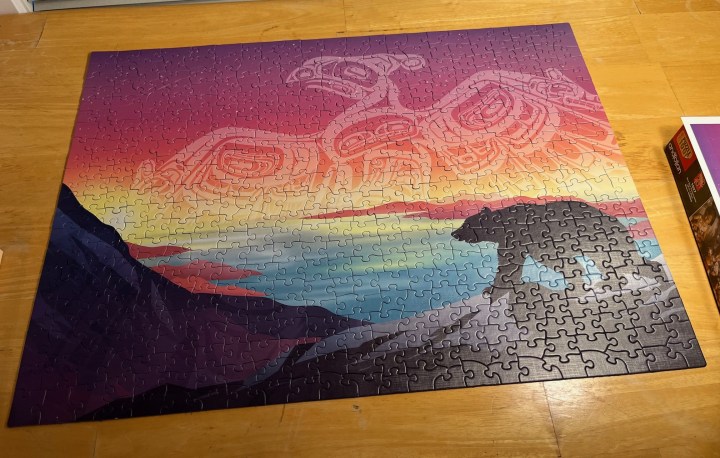Puzzle Artwork: Special acknowledgements to Cobble Hill Puzzle Company and the featured artwork of Tristan Wolf entitled Crossings: Thunderbird and Bear.